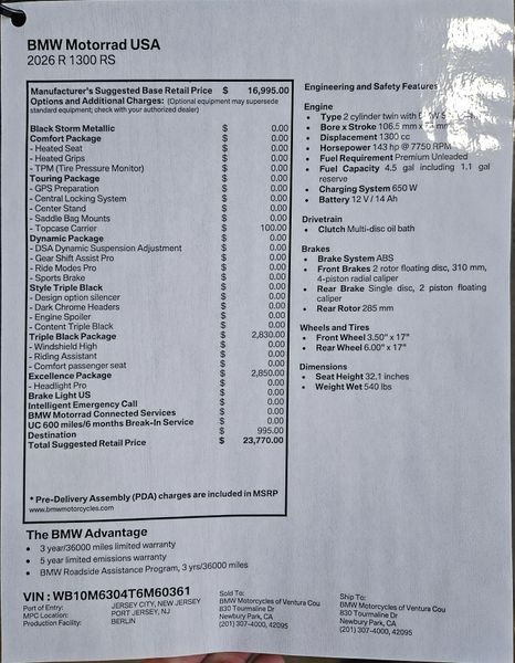 New 2026 BMW R 1300 RS